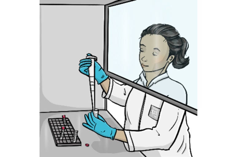 Die Mitarbeiterinnen oder Mitarbeiter schicken die Zellen in ein Labor.